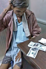 Tôi lắc đầu và chỉ tay vô cọc tiền đô :