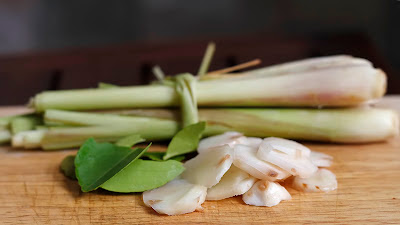 Trái với VN ta thường sử dụng riềng già, ở món Tom Yum ta sẽ dùng riềng non nhé các bạn. Sáng nay vội vã lựa nên tôi lấy lộn gừng thay vì riềng (hai thứ này khi còn non rất giống nhau) ! Mùi riềng thật đặc biệt, chắc chả có một thứ gia vị nào sánh nổi (nhất là khi ăn món cầy tơ). Riềng sẽ được cắt lát mỏng bạn nhé.