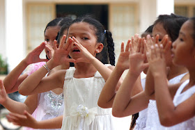 Các cô chú đang lựa ra từng món xem hợp với đứa nào thì phát cho đứa đó.
