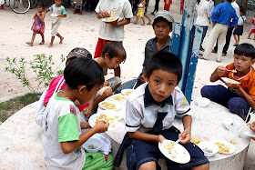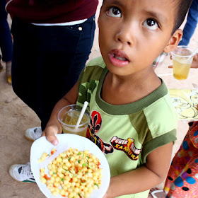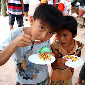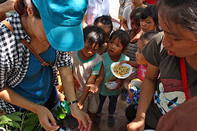 Úi chạy mau lên tụi bay ơi ! Mấy cô chú đang phát đồ kìa !