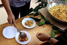 Bọn chúng cứ xúm đen xúm đỏ chờ mẻ bắp mới ra lò !